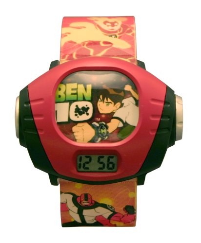 The Ben 10 kid's digital projector watch features a comfy plastic band, 5-millimeter plastic case and red dial with a Ben 10 graphic. Powered by digital quartz movement, this fun timepiece also has a large time display, so kids won't have trouble telling time.