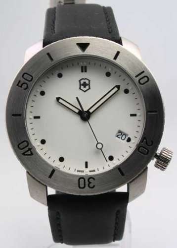 * All Stainless Steel Case & Buckle * Strong Black Stitched Genuine Leather Band * Analog with Luminous Glow In Dark Hands & Markers * Soft Round Snow White Face w/ Rotating Bezel * Date at "4" Position * Screwed In Case Back * Screwed In Crown * Rotating Second Hand * Official Swiss Army Emblem at "12" Position & On The Case Back & Buckle * Precision Swiss Quartz Movement * Quality Swiss Made * 10 BAR - 100 m - 330 ft - Water Resistant * Anti Reflective Scratch Resistant Mineral Crystal * Guaranteed 100% Authentic Victorinox Swiss Army Watch * Brand New - Never Worn - In Victorinox Swiss Army Case * Retail Price $195.00
