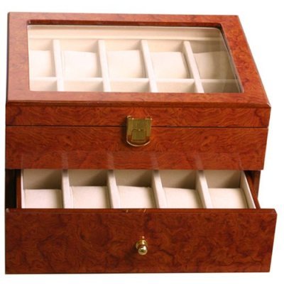Watch Storage Chest For 20 Watches Burlwood Finish