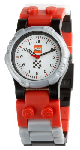 This innovative watch from LEGO lets your little one design his or her own unique creation, and change it often! Sure to please any young artist in the making, this watch's strap comes in a variety of non-allergenic polycarbonite pieces and interchangeable bezels that click together for a personalized look. The round case features a white dial with a cool racing graphic and easy-to-read red Arabic-numeral hour indicators that make telling time a cinch for beginners. Water resistant to 165 feet, this watch is as durable as it is fun.