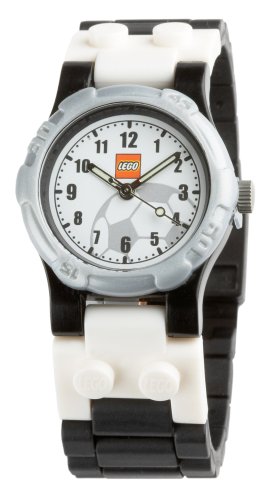 This innovative watch from LEGO lets your little one design his or her own unique creation, and change it often! Sure to please any young artist in the making, this watch's strap comes in a variety of non-allergenic polycarbonite pieces and interchangeable bezels that click together for a personalized look. The round case features a white dial with a cool graphic and easy-to-read Arabic-numeral hour indicators that make telling time a cinch for beginners. Water resistant to 165 feet, this watch is as durable as it is fun.