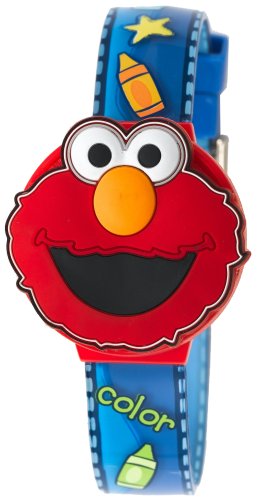 Kids will have fun telling time and learning colors with this cute watch featuring Sesame Street's Elmo. Flip open Elmo's face to see a red plastic 31-millimeter-in-diameter dial printed with a paint bucket graphic and names of colors. A digital display makes telling time easy and a vibrantly colored plastic band and metal buckle make kids feel fashionable.